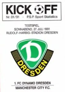 Dynamo Dresden v Manchester City Friendly 1991/92 Posted on August 16, 2025 by boswellDYNAMO DRESDEN 2 CITY 1Friendly27th July 1991Scorers City Clarke Dresden ?